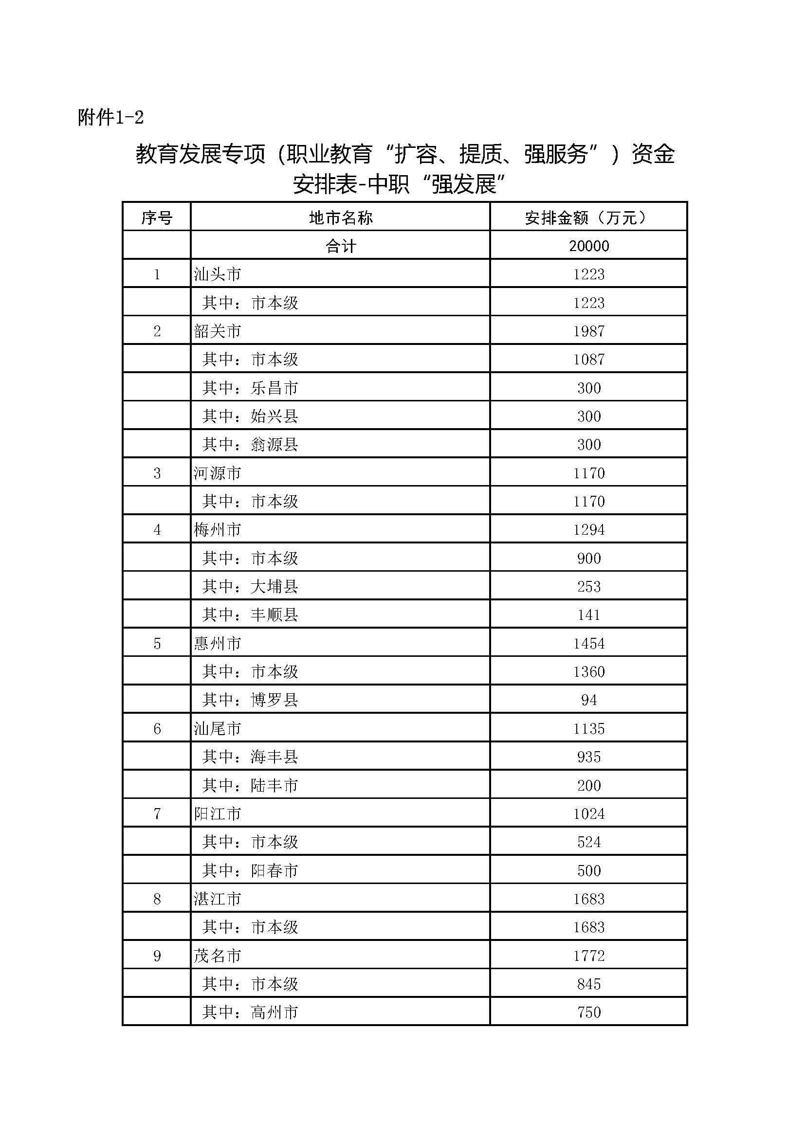 根據《廣東省省級財政專(zhuān)項資金管理辦法(修訂)》(粵府〔2023〕34號)等文件要求,現將我省2024年教育發(fā)展專(zhuān)項資金(職業(yè)教育“擴容、提質(zhì)、強服務(wù)”)60000萬(wàn)元的分配方案及績(jì)效目標(見(jiàn)附件1、2)予以公示。公示期自2023年12月26日至2024年1月1日,共7天。