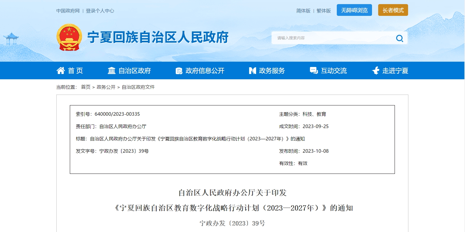 寧夏回族自治區(qū)教育數(shù)字化戰(zhàn)略行動(dòng)計(jì)劃(2023—2027年)