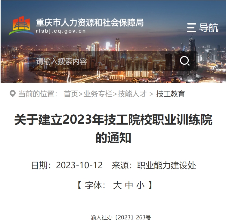 重慶市人力資源和社會(huì )保障局辦公室官方發(fā)布關(guān)于建立2023年技工院校職業(yè)訓練院的通知,決定建立重慶工貿技師學(xué)院、重慶能源工業(yè)技師學(xué)院、重慶交通技師學(xué)院等3個(gè)技工院校職業(yè)訓練院,項目建設周期為2年,按規定......